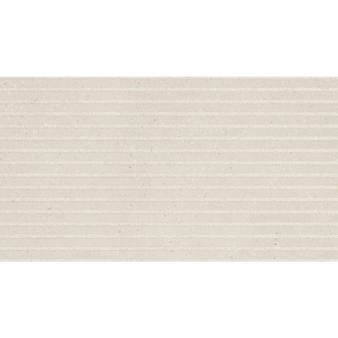 Sable clair nervuré pour un mur lumineux et organique - le GEOLOGY Rigat One Sabbia en carrelage mural salle de bain grès cérame apporte légèreté et matière naturelle à vos intérieurs humides. Finition mat, bords rectifiés. Fabriqué en Italie. Format : 60×120 cm.